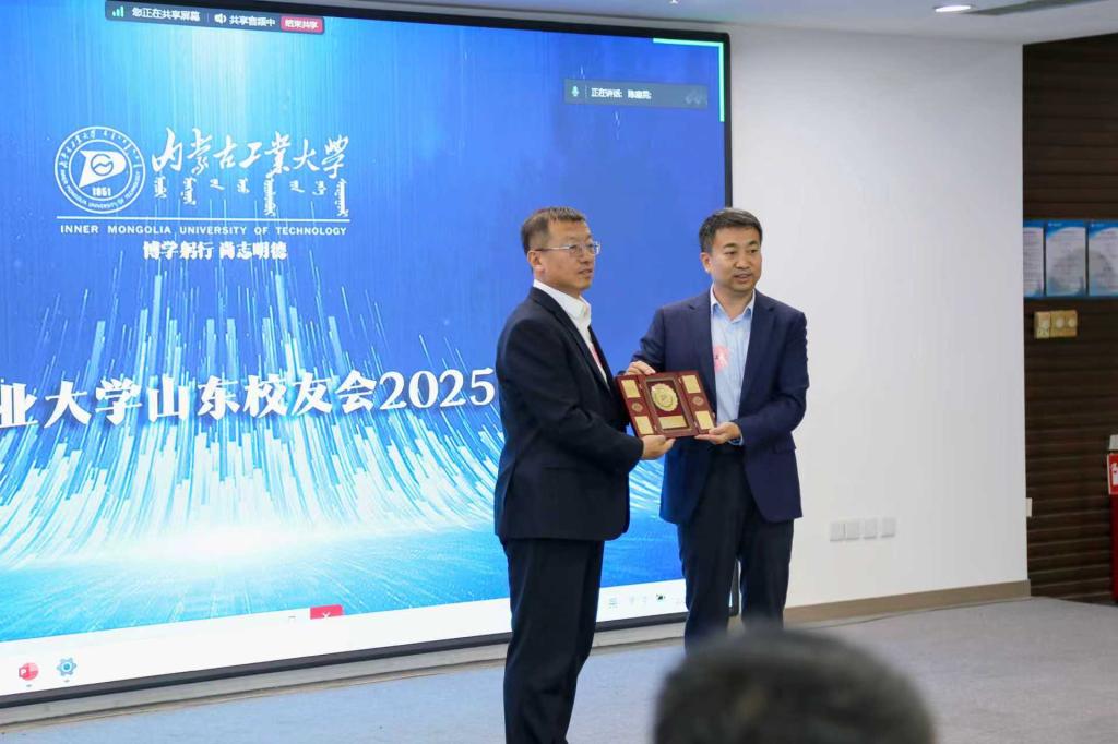 为表达对山东校友的深情厚谊,孙占久一行代表学校向山东校友会赠送了专属纪念品,以及由上海校友会创作、我校张智老师亲笔书写的书法作品,传递出全国内工大人同心同德、携手前行的精神风貌。